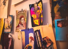 In de galerij zijn er schilderijen, etsen, tekeningen of collages te koop aangeboden
